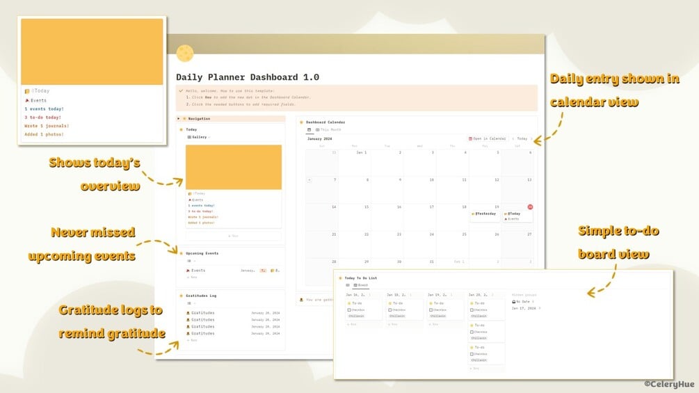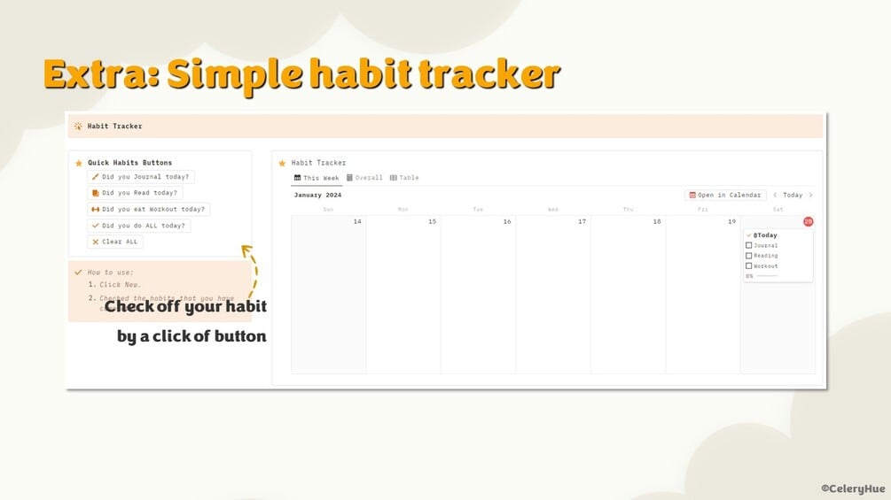 Elevate your daily routine with our Notion Daily Planner, a simple designed template that seamlessly blends functionality with minimalist appeal. This minimal tool is designed to make each day intentional, productive, and visually appealing.