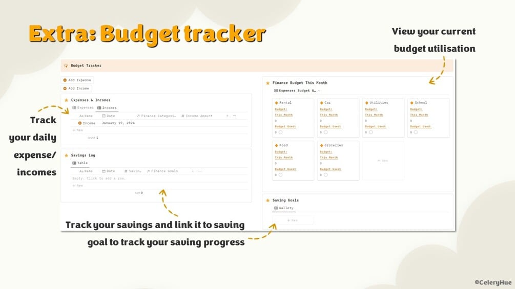 ✅ Simple Budget Trackers - Tracks your monthly budget utilisation and monthly savings.